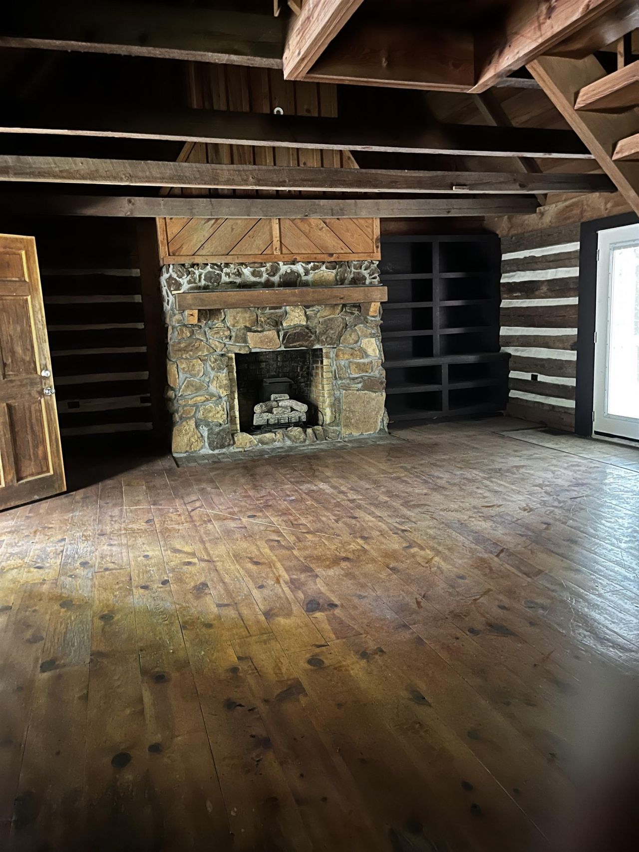 Genuine log cabin located on 3 wooded acres. Small log storage building, deck on back, front porch totally across front. plenty of space for children to play and good neighborhood. Owner/Agent
